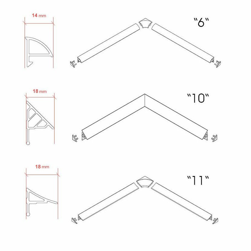 Sada koncovek a rohových spojek pro krycí lištu 6. V bílém provedení.