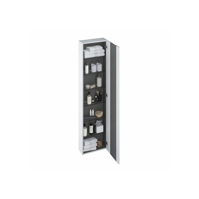 Vysoká skříňka SB Balance 400 s šesti kouřovými skleněnými poličkami. Vnitřní prostor skříňky je v barvě grafit. Dodáváno ve smontovaném stavu včetně montážní sady (šrouby, panty, záslepky). Skříňka je montována na zeď. Pro ucelené řešení a designový soulad koupelny doporučujme skříňku SB Balance 400 kombinovat s ostatními nábytkem řady Balance a dalšími výrobky RAVAK.