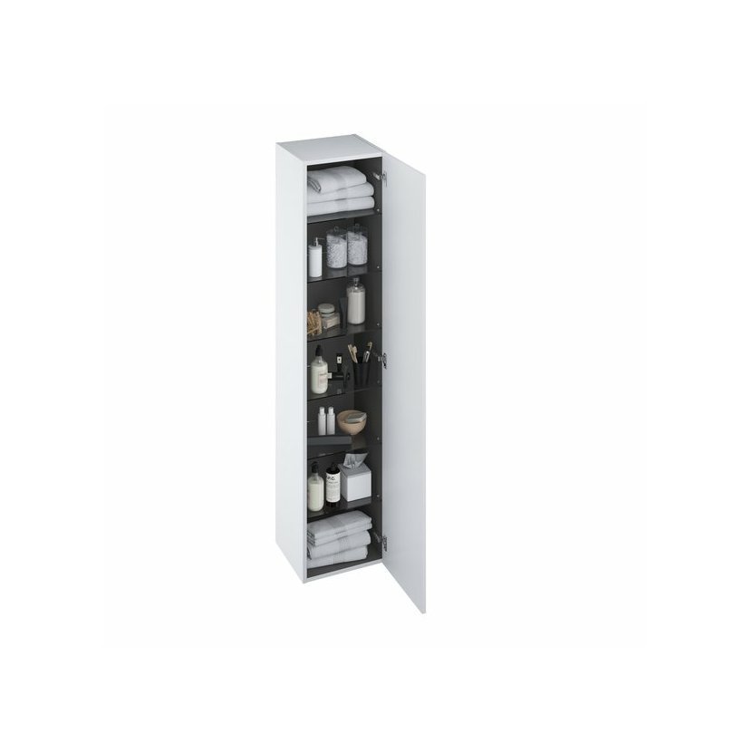 Vysoká skříňka SB Comfort 350 s šesti kouřovými skleněnými poličkami. Vnitřní prostor skříňky je v barvě grafit. Skříňka je dodávána s kovovým madlem v bílé barvě. Jako další variantu nabízíme madlo v provedení chrom, které je možné objednat samostatně. Dodáváno ve smontovaném stavu včetně montážní sady (šrouby, panty, záslepky). Skříňka je montována na zeď. Pro ucelené řešení a designový soulad koupelny doporučujme skříňku SB Comfort 350 kombinovat s ostatními nábytkem řady Comfort a dalšími výrobky RAVAK.
