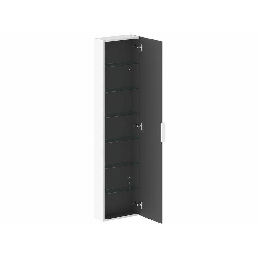 Vysoká skříňka SB Comfort II 40 s šesti kouřovými skleněnými poličkami. Vnitřní prostor skříňky je v barvě grafit. Skříňka má předvrtaný otvor pro madlo, které není součástí skříňky a je nutné jej dokoupit zvlášť. Na výběr je ve třech barevných provedeních - lesklý chrom, černá nebo bílá. Dodáváno ve smontovaném stavu včetně montážní sady (šrouby, panty, záslepky). Skříňka je montována na zeď. Pro ucelené řešení a designový soulad koupelny doporučujeme skříňku SB Comfort II 40 kombinovat s ostatními nábytkem řady Comfort II a dalšími výrobky RAVAK.