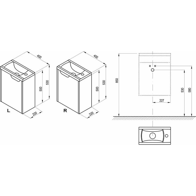 v rozměrech 400 x 500 x 220 mm (š/h/v) v barvě: latte určena k umývátku Classic Mini I nebo Mini II - není součástí balení.Nutno objednat !!!!!!!!!!!!!!! polička v dekoru korpusu skříňky