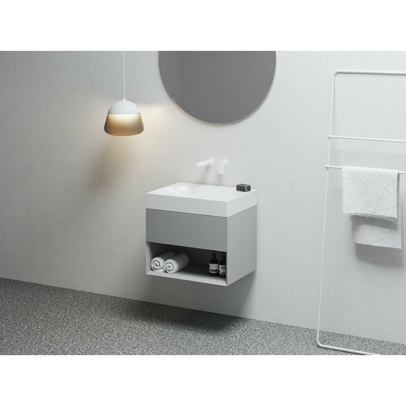 Skříňka pod umyvadlo SD Lite 60 je určena pod umyvadla Lite 60 a Lite 60/45 L/P. Je vybavena čelní zásuvkou a policí. Zásuvka skříňky se otevírá tahem za spodní hranu čela. Dodáváno ve smontovaném stavu včetně montážní sady (šrouby, panty, záslepky). Skříňka je montována na zeď.