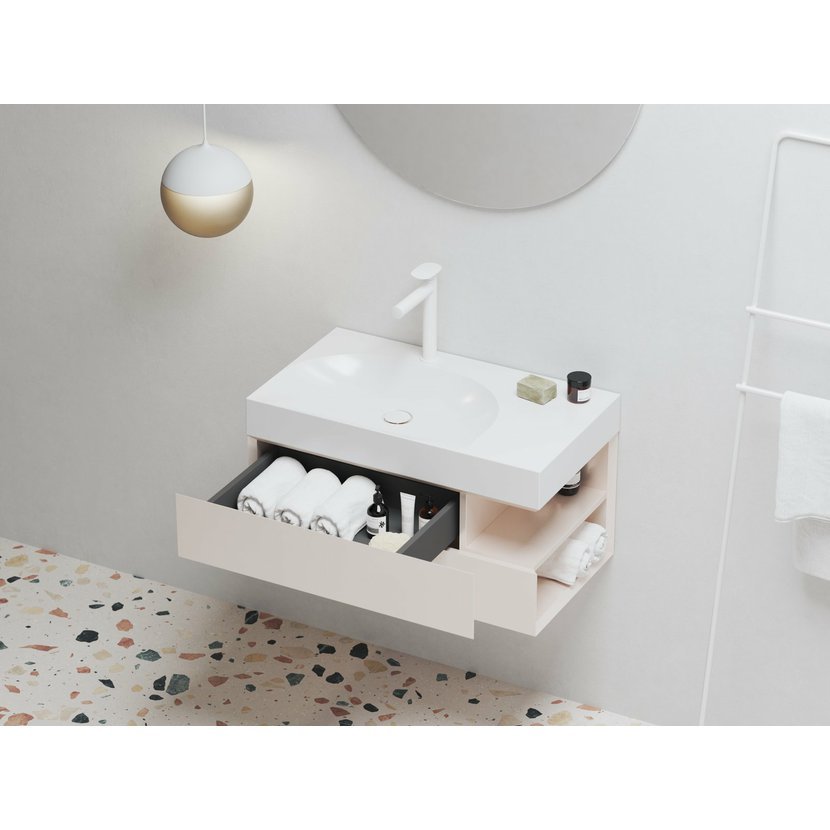 Skříňka pod umyvadlo SD Lite v provedení Alabaster Pink. Pravá varianta.