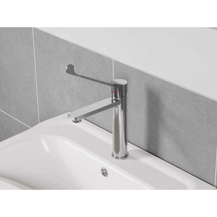 Tato speciálně upravená vodovodní baterie s prodlouženou lékařskou pákou je zvláště vhodná pro osoby tělesně handicapované, seniory a osoby s omezenou pohyblivostí. Uplatní se prostředí nemocnic, rehabilitačních a zdravotnických zařízení, kde je nezbytné ovládat vodu pomocí předloktí místo dlaně. Uvnitř baterie je důmyslný perlátor s funkcí EcoFlow. Průtok je omezený na 4 l za minutu a obohacený o vzduch. Nejspíš si toho ani nevšimnete, ale projeví se to na vaší spotřebě vody, která bude nižší než u běžné baterie. Doporučujeme kombinovat s umyvadlem a WC řady Safe. Na vnější čištění doporučujeme používat čistící přípravek RAVAK Cleaner Chrome.