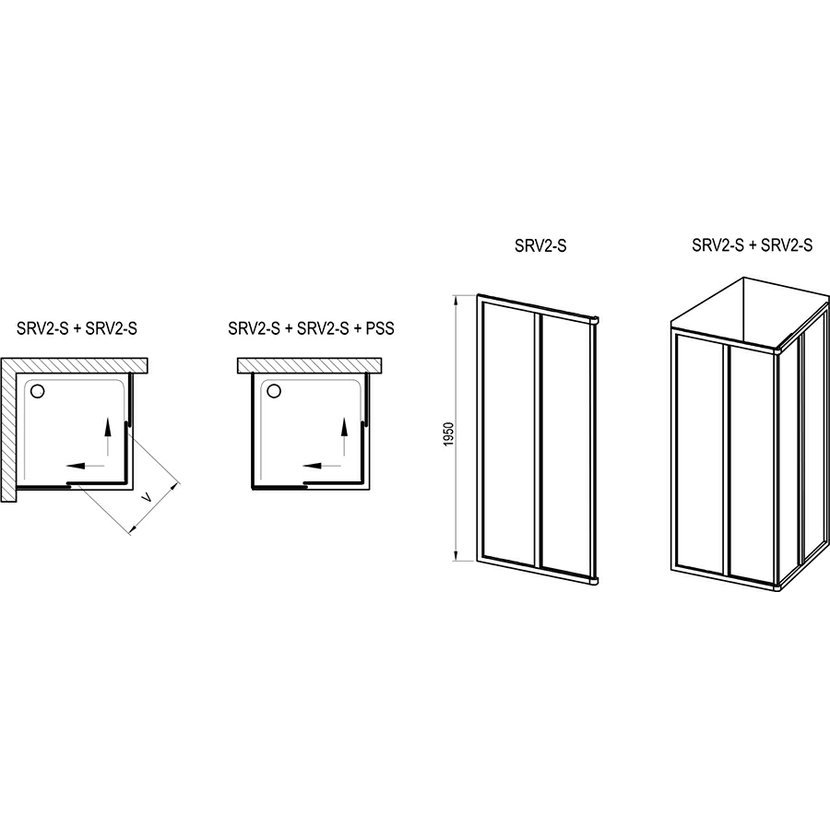 Parametry produktu RAVAK Supernova SRV2-75 S 1/2 rohového sprchového koutu bílá+grape