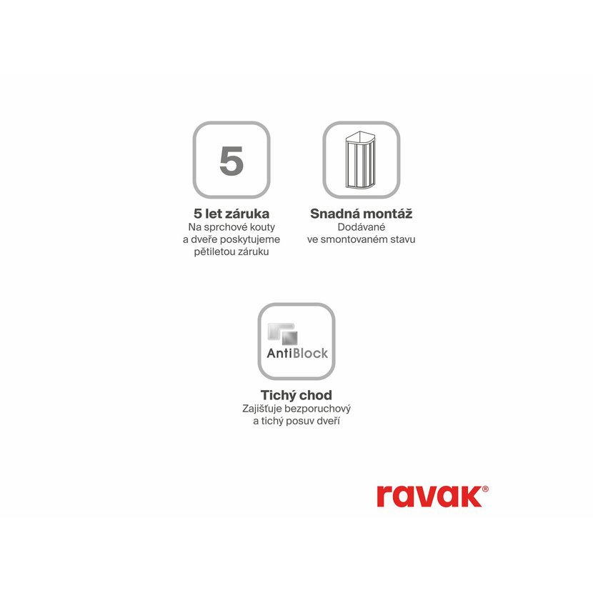 Rohový sprchový kout je složen ze dvou samostatných produktů, dvou posuvných sprchových dveří. Montuje se do obloženého rohu koupelny na vaničku RAVAK Angela, Perseus Pro, Perseus Pro Chrome, Perseus Pro Flat nebo přímo na podlahu se zabudovaným odtokovým žlabem či podlahovou vpustí. Použitím nastavovacího profilu NPS lze výrobky rozšířit o 20 mm, proto se dokonale přizpůsobí stavebním nerovnostem až o 4 cm na každé straně.