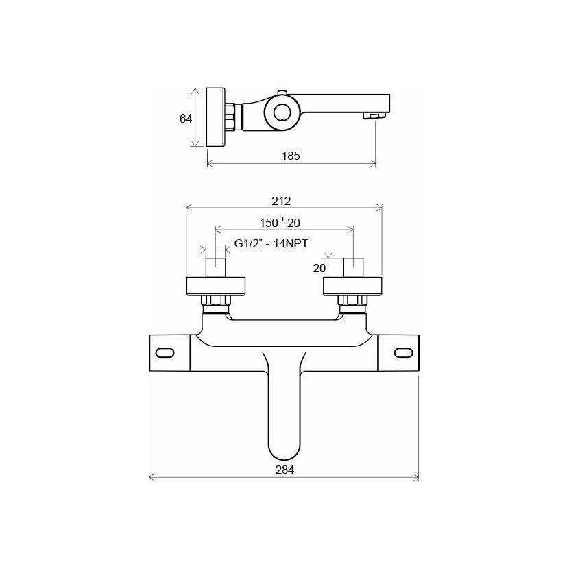 Termostatická nástěnná vanová baterie Termo, bez sprchového setu. V chromovém provedení. Nastavení stálé teploty vody.