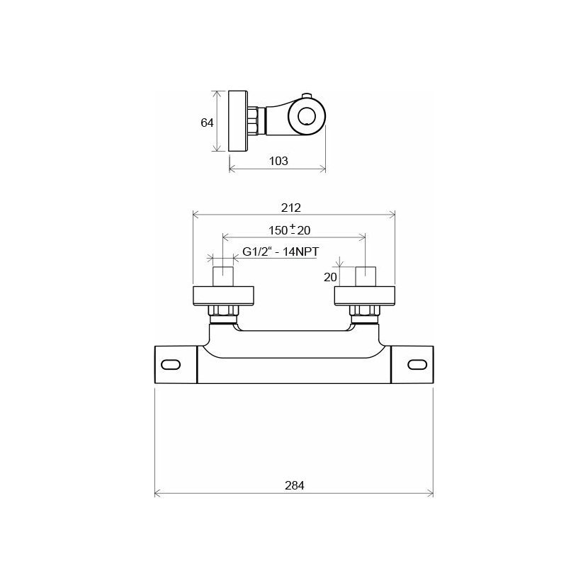 RAVAK TE 033.00CR Termostatická sprchová nástěnná baterie, bez setu, chrom
