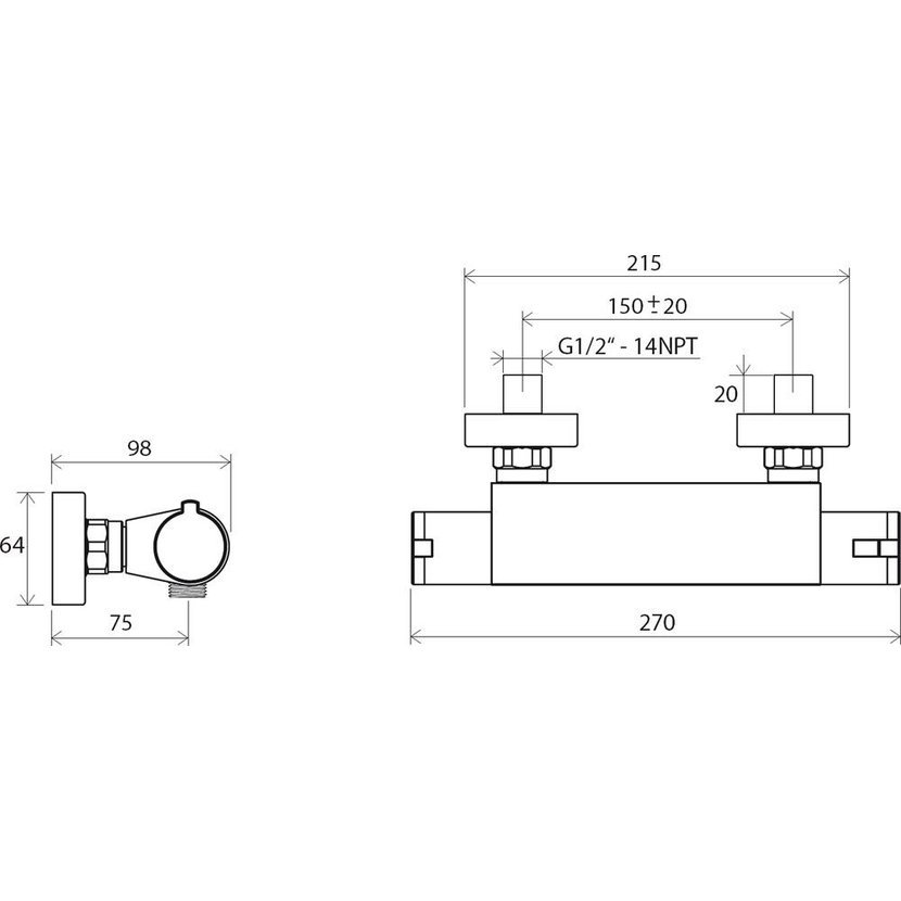 Termostatická nástěnná sprchová baterie Termo, bez sprchového setu. V chromovém provedení. Nastavení stálé teploty vody.