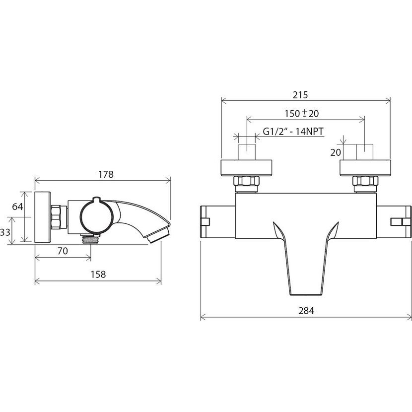 Termostatická nástěnná vanová baterie Termo, bez sprchového setu. V chromovém provedení. Nastavení stálé teploty vody.