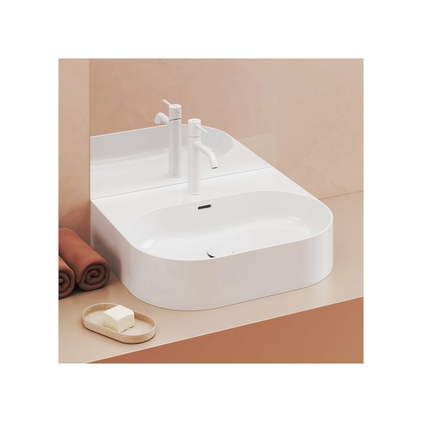 Tenkostěnné keramické umyvadlo Ceramic Slim k instalaci na desku nebo skříňku, s přepadem. Bílé provedení.