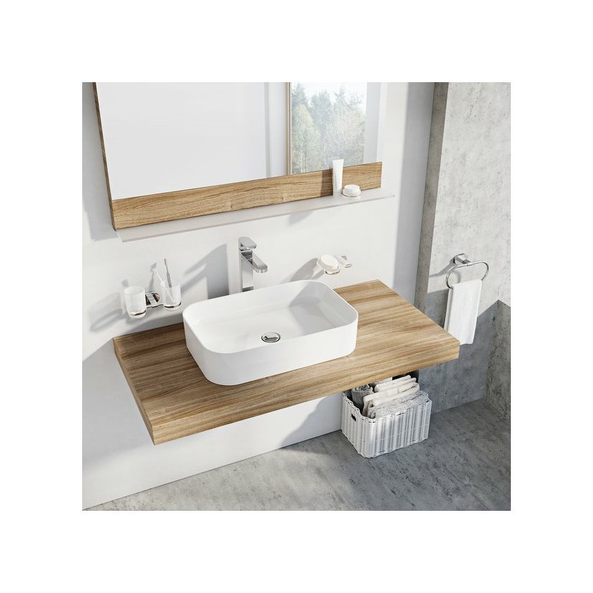doplňky k dokoupení: deska pod umyvadlo / skříňka pod umyvadlo na desku, umyvadlová pileta pevná, sifon chromový nebo nábytkový, extra prodloužené baterie Chrome nebo 10°