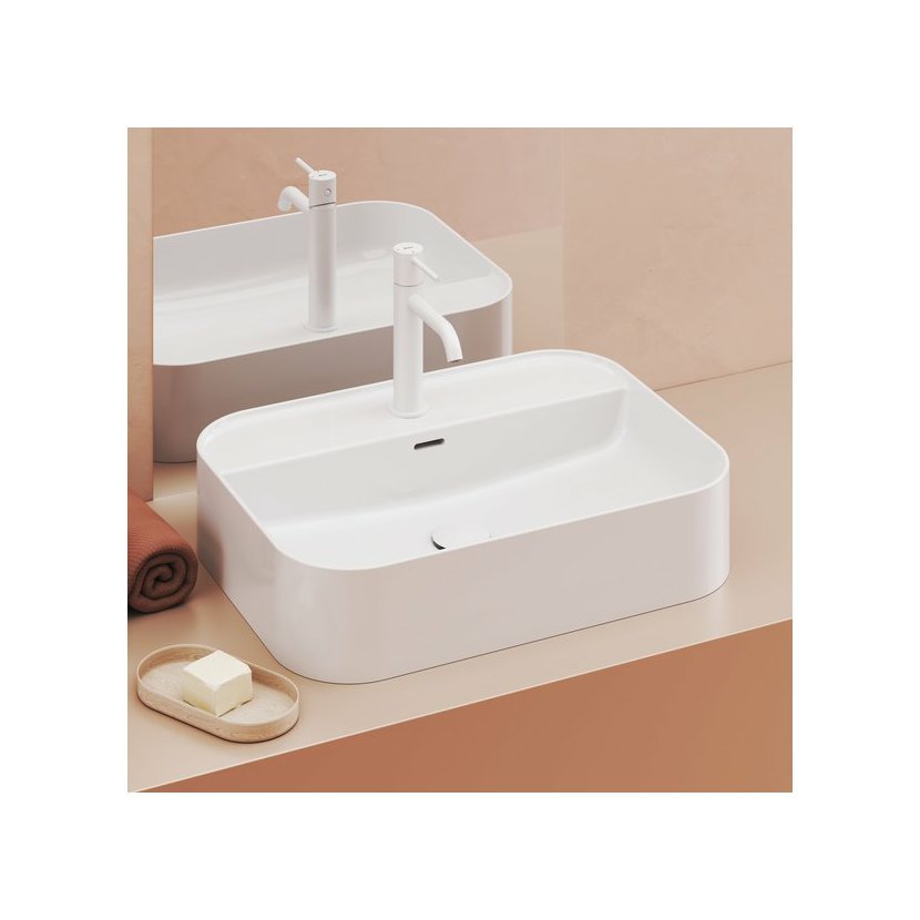Tenkostěnné keramické umyvadlo Ceramic Slim k instalaci na desku nebo skříňku, s přepadem. Bílé provedení.