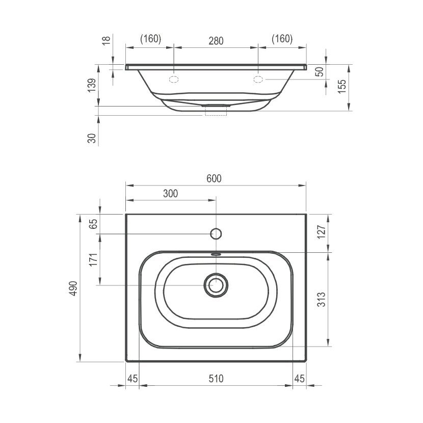 RAVAK Umyvadlo Chrome Slim 600 s otvory
