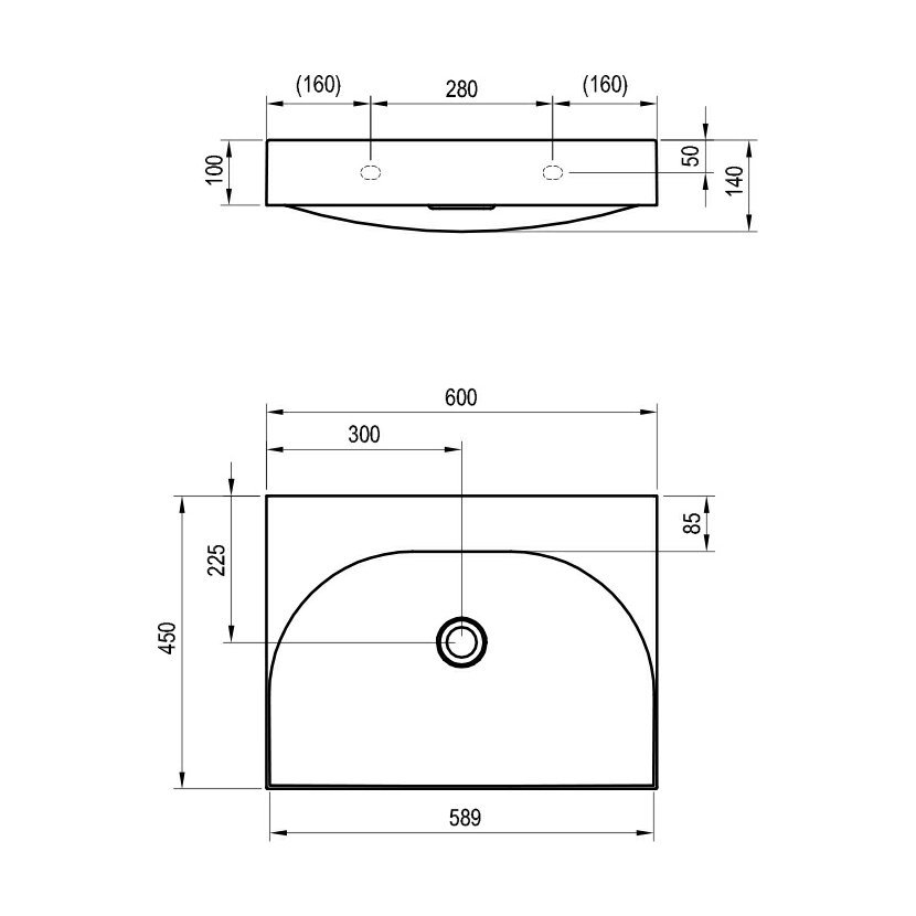 RAVAK Umyvadlo Lite 60, bez otvoru pro baterii, bez přepadu