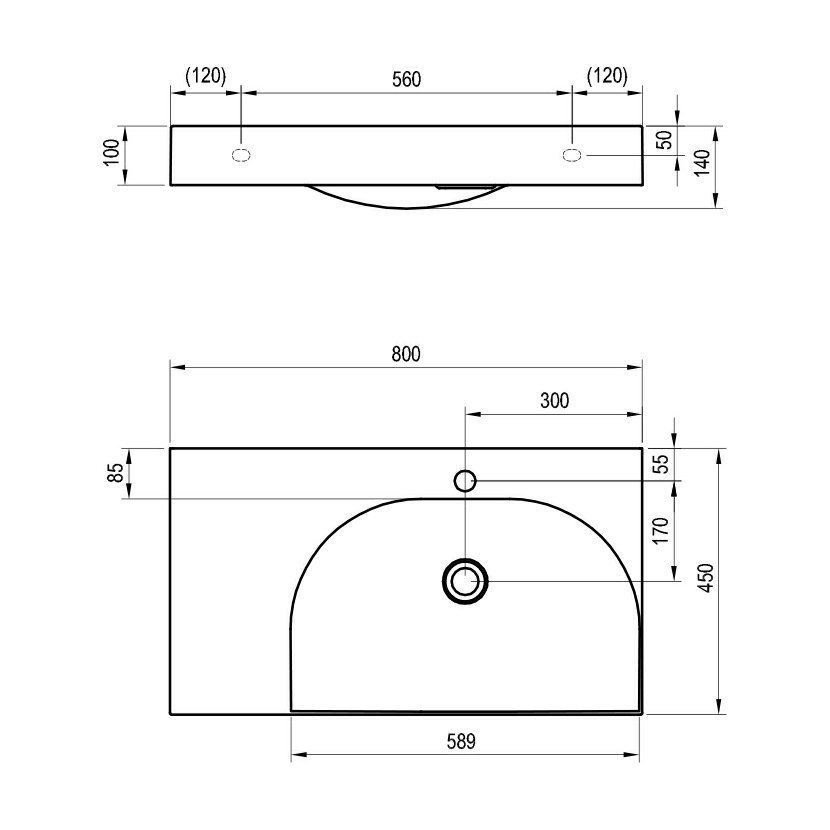 RAVAK Umyvadlo Lite 80/60 L, s otvorem pro baterii, bez přepadu