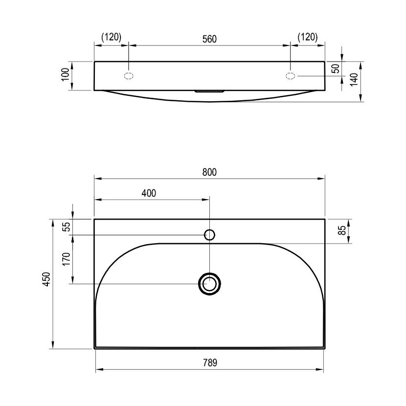 RAVAK Umyvadlo Lite 80, s otvorem pro baterii, bez přepadu