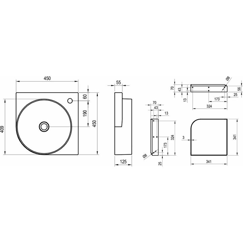 Parametry produktu RAVAK Umyvadlo Yard 450 C keramické, bílá
