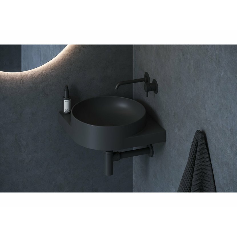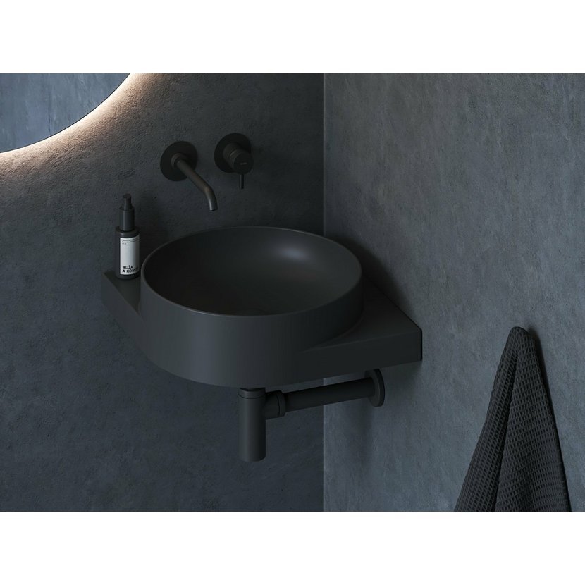 Tenkostěnné keramické rohové umyvadlo Yard k instalaci na konzoli Yard, bez přepadu. V provedení antracit. Bez otvoru - pro kombinaci s umyvadlovou podomítkovou baterií.
