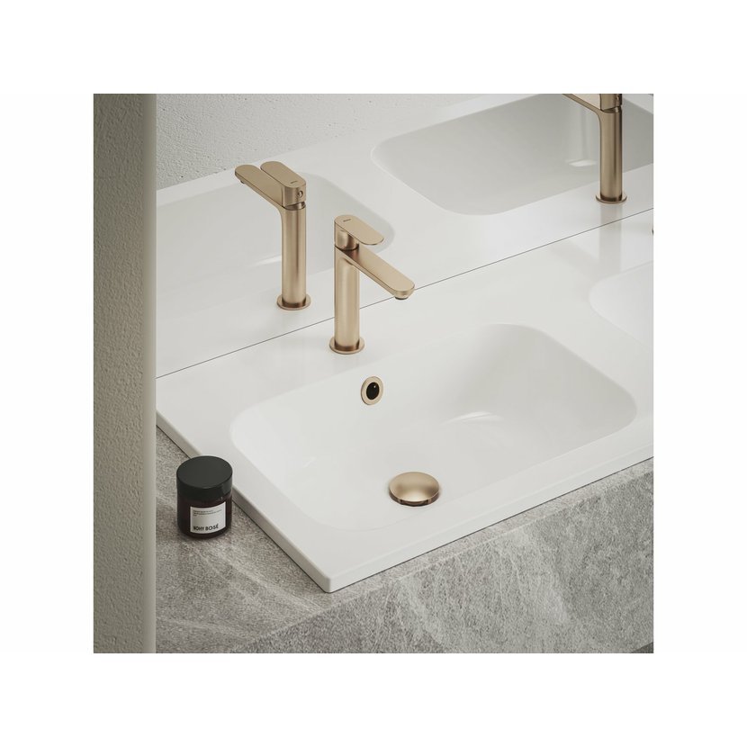 Piletu umístěnou v umyvadle s přepadem zkombinujete s baterií a sifonem shodného barevného provedení Rose Gold Brushed.