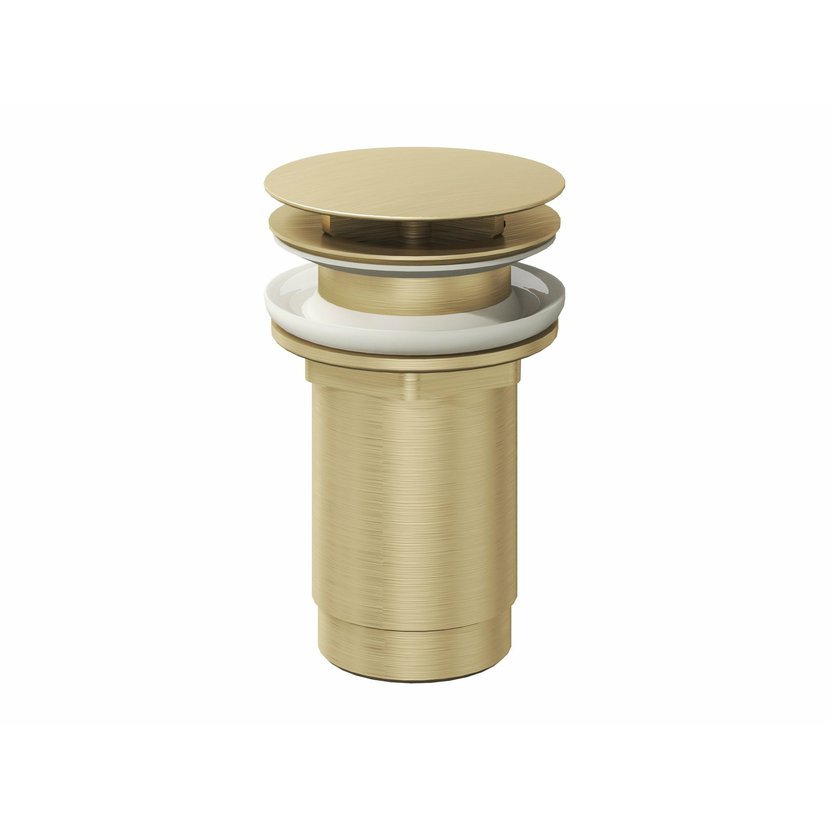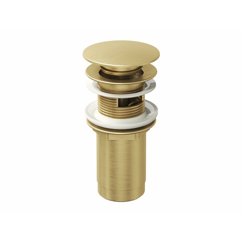 Univerzální umyvadlová pileta se systémem 2v1. Lze ji instalovat s ovládáním ClickClack, nebo jako pevnou. V provedení Gold Brushed. Vhodná pro umyvadla s přepadem i bez přepadu.