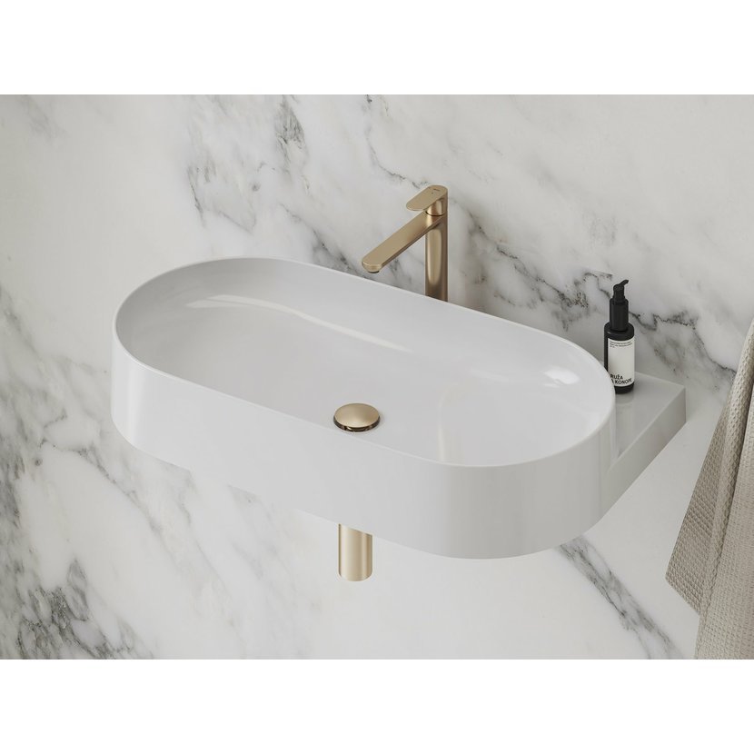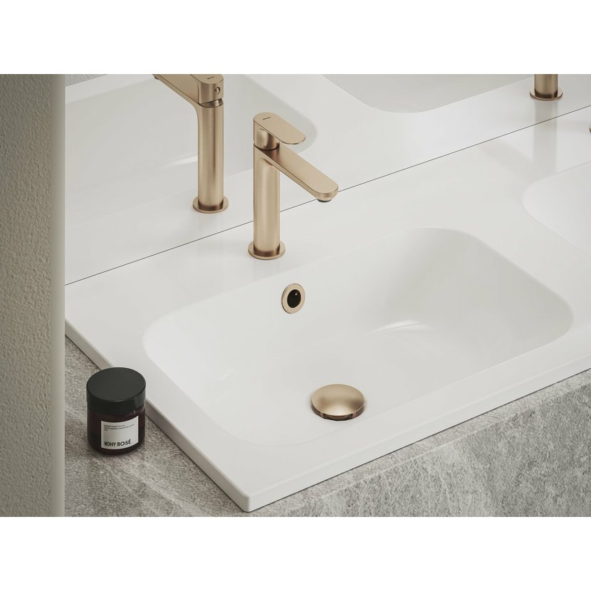 Piletu umístěnou v umyvadle s přepadem zkombinujete s baterií a sifonem shodného barevného provedení Rose Gold Brushed.