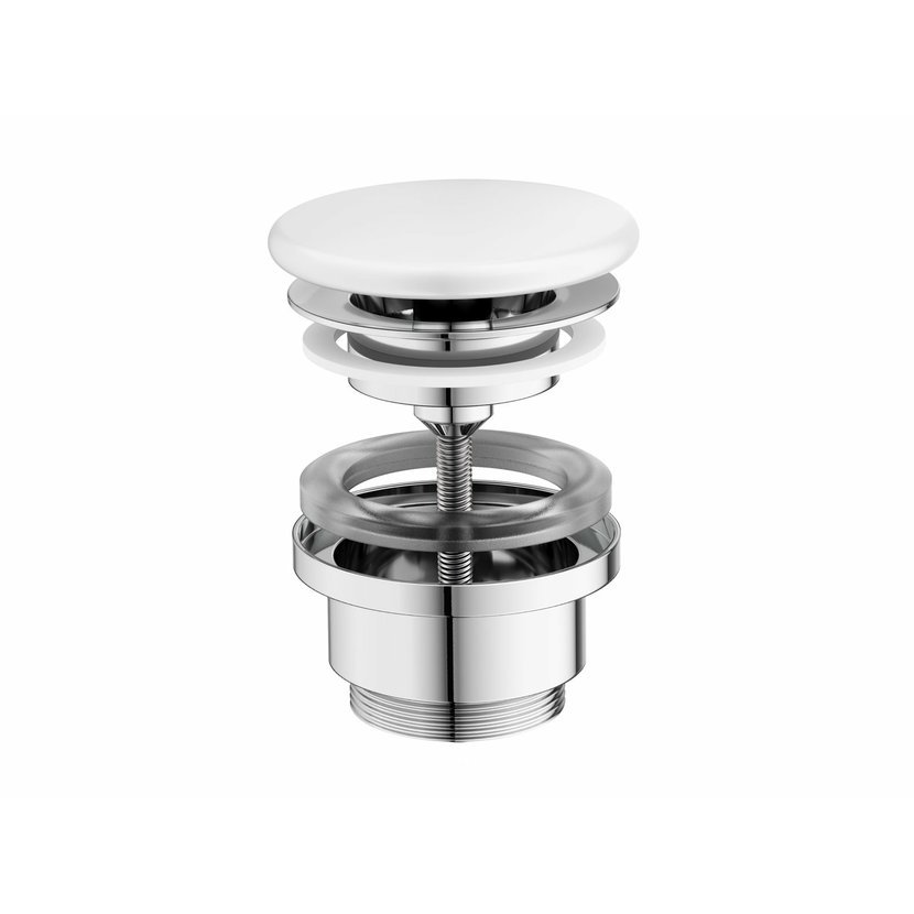 Umyvadlová pileta pevná Flat s keramickou zátkou v bílém provedení. Vhodná pro umyvadla bez přepadu.
