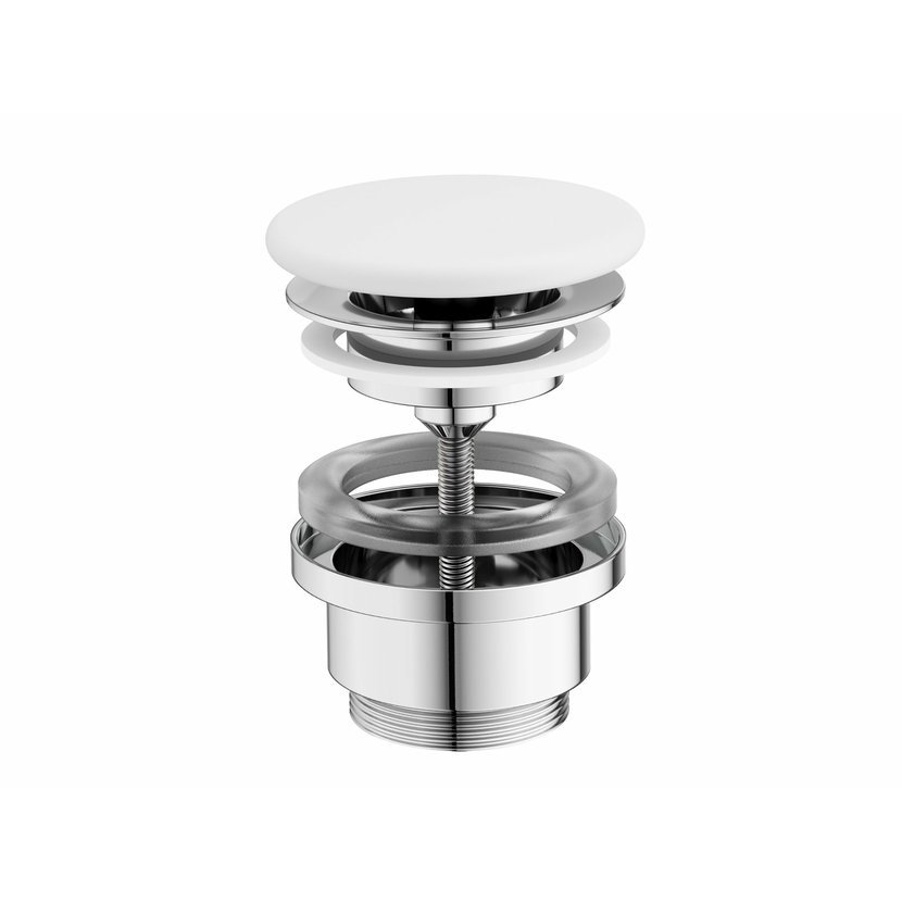 Umyvadlová pileta pevná Flat s keramickou zátkou v bílém matném provedení. Vhodná pro umyvadla bez přepadu.