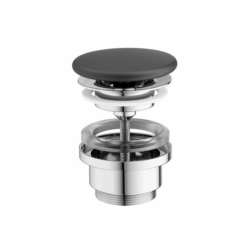 Umyvadlová pileta pevná Flat s keramickou zátkou v provedení antracit. Vhodná pro umyvadla bez přepadu.