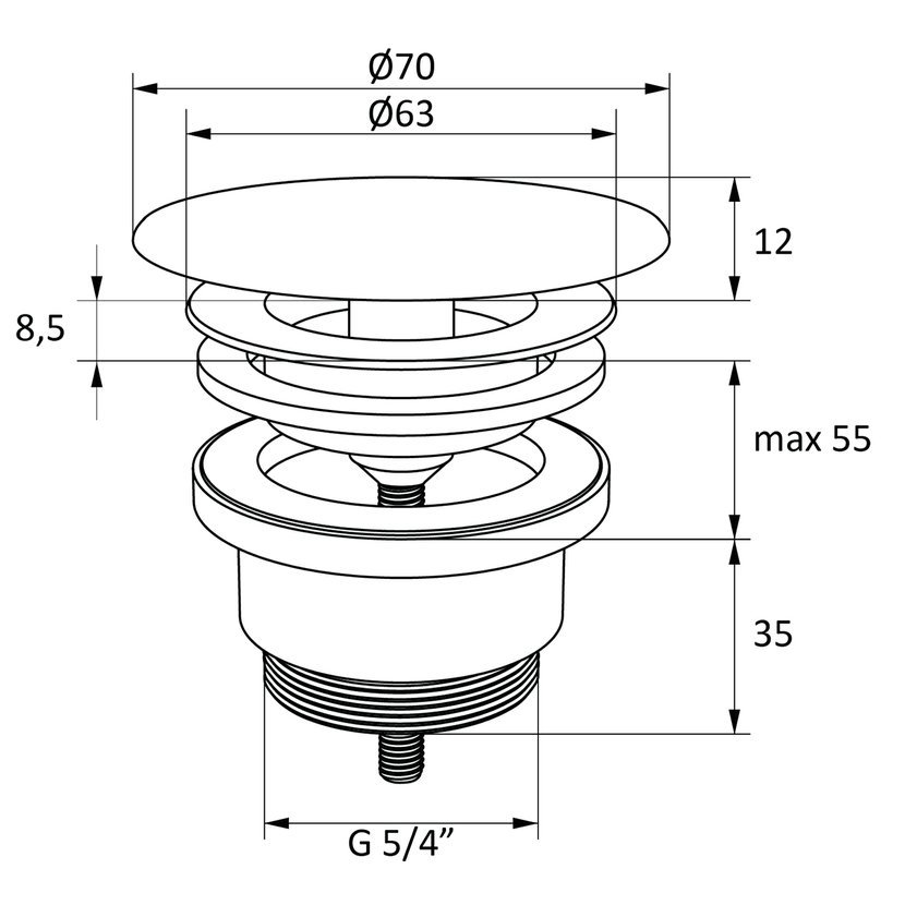 • vhodné: pro všechna umyvadla bez přepadu s odtokem o průměru 46 mm a závitem G 5/4“