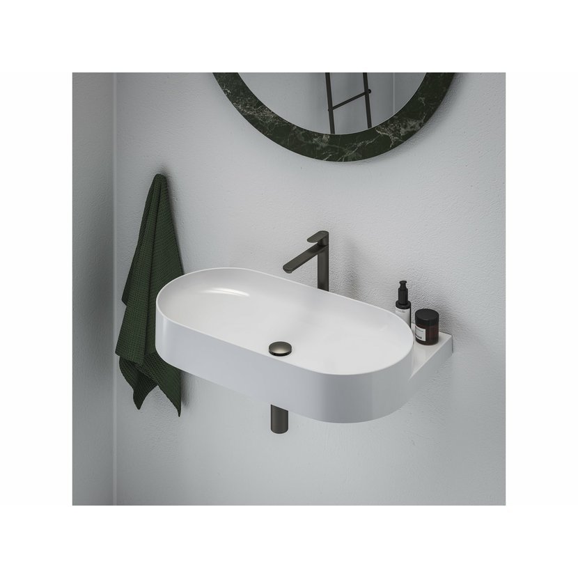 Pevná pileta v provedení grafit kartáčovaný působí v umyvadle luxusně. Piletu umístěnou v nástěnném umyvadle nebo v umyvadle na desku doporučujeme kombinovat se sifonem ve stejném barevném provedení.