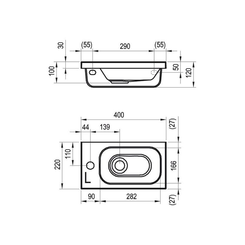 Parametry produktu RAVAK Umývátko Chrome 400 L s otvory
