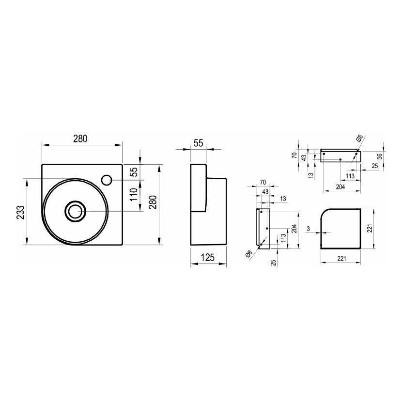 Parametry produktu RAVAK Umývátko Yard 280 C keramické, bílá