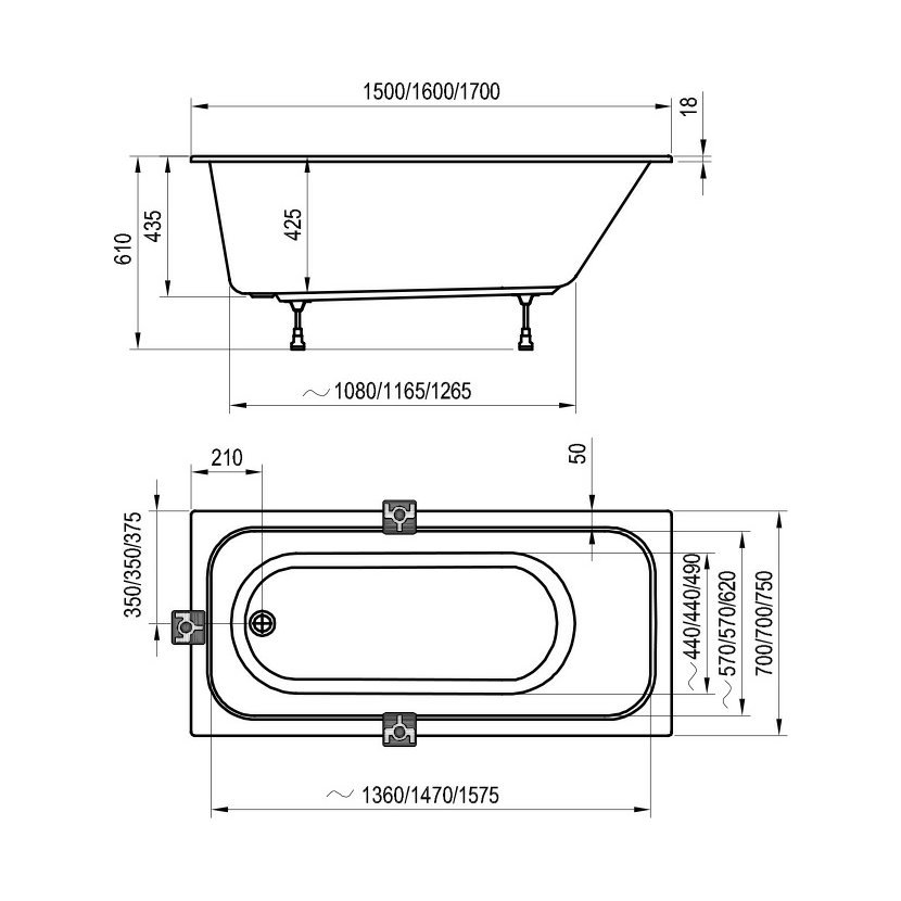 Parametry produktu  RAVAK Vana Chrome Slim 150x70