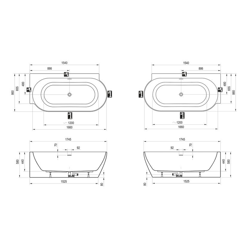 RAVAK Vana Freedom Corner II Tec 175x86 P, volně stojící, bílá, krytka odtoku bílá
