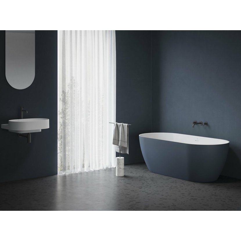 Neomezujte se. Relaxujte. Pozvolně oblé křivky volně stojící vany Freedom O navozují v koupelně uklidňující atmosféru a příjemně objímají tělo. V provedení Deepsea Blue.
