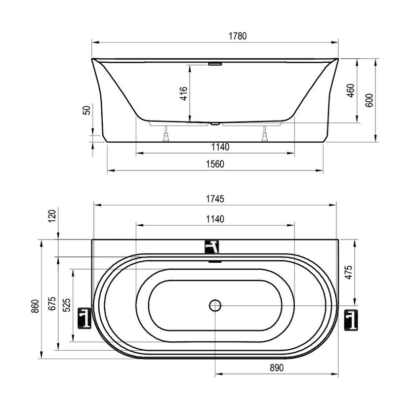 Vanu nelze doplnit vanovou zástěnou. Veškerý rozvod musí být veden podlahou (jak odpadový, tak přívody vody pro podlahovou baterii). Vanový odtokový komplet (tj. přepad, pileta, sifon, zápachová uzávěra) a podpora (nožičky) jsou součástí balení. K vaně doporučujeme zvolit i vanové napouštění vodopádem nebo podomítkovou baterii.