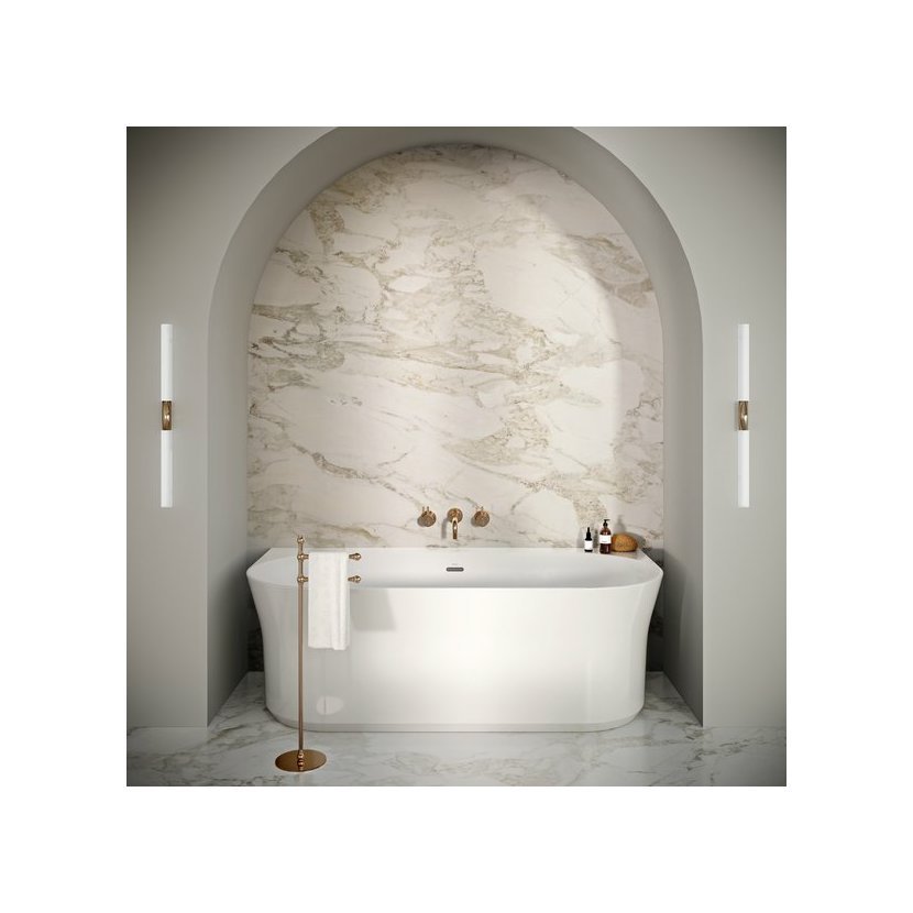 Romantická souhra siluety a pozadí. To přináší Ypsilon Wall, varianta naší elegantní solitérní vany ke zdi. Se širokým okrajem. A s dokonalou ergonomií pro vaši relaxaci. V bílém provedení.