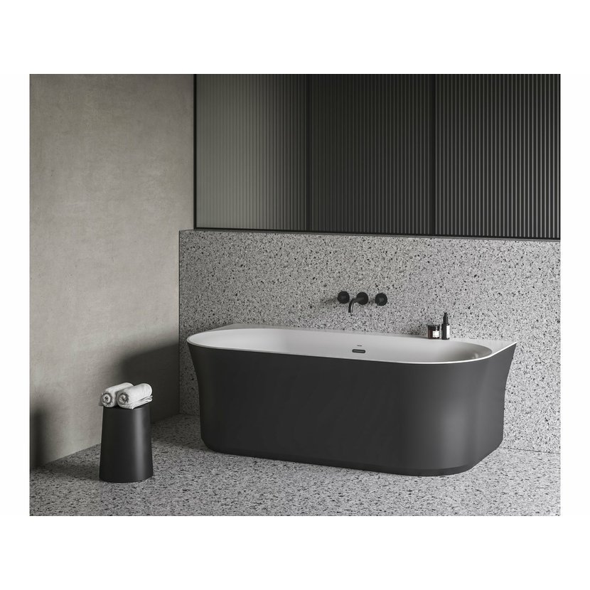 Romantická souhra siluety a pozadí. To přináší Ypsilon Wall, varianta naší elegantní solitérní vany ke zdi. Se širokým okrajem. A s dokonalou ergonomií pro vaši relaxaci. V černém provedení.