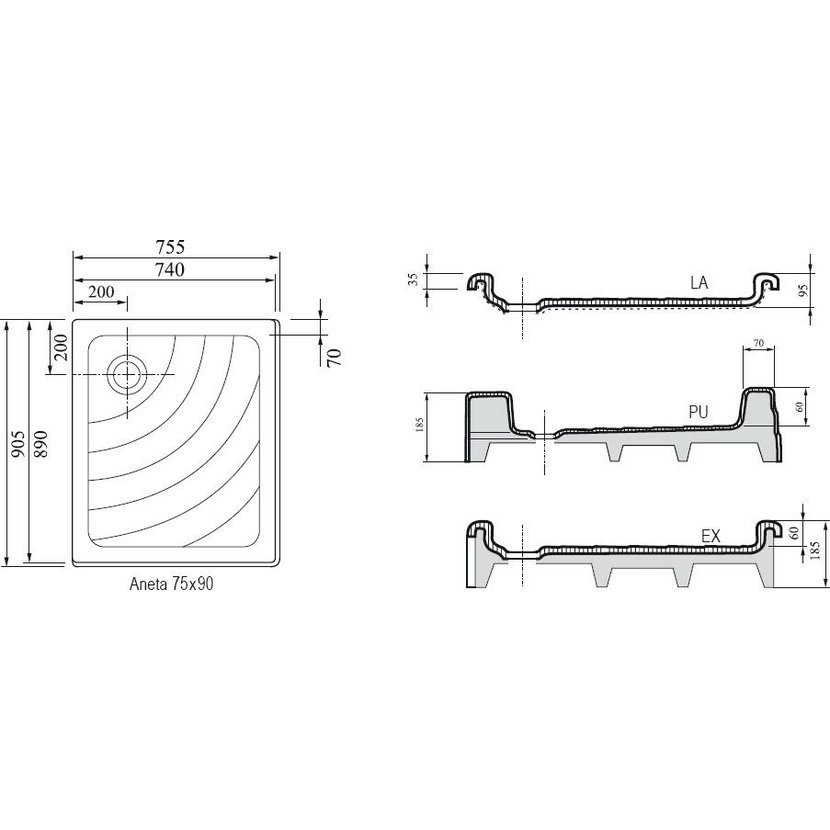 Obdélníková sprchová vanička Aneta LA je určená k instalaci na nožičky nebo k zapuštění. Vyrobena z akrylátu v bílé barvě a s ochrannou vrstvou AntiBac®.
