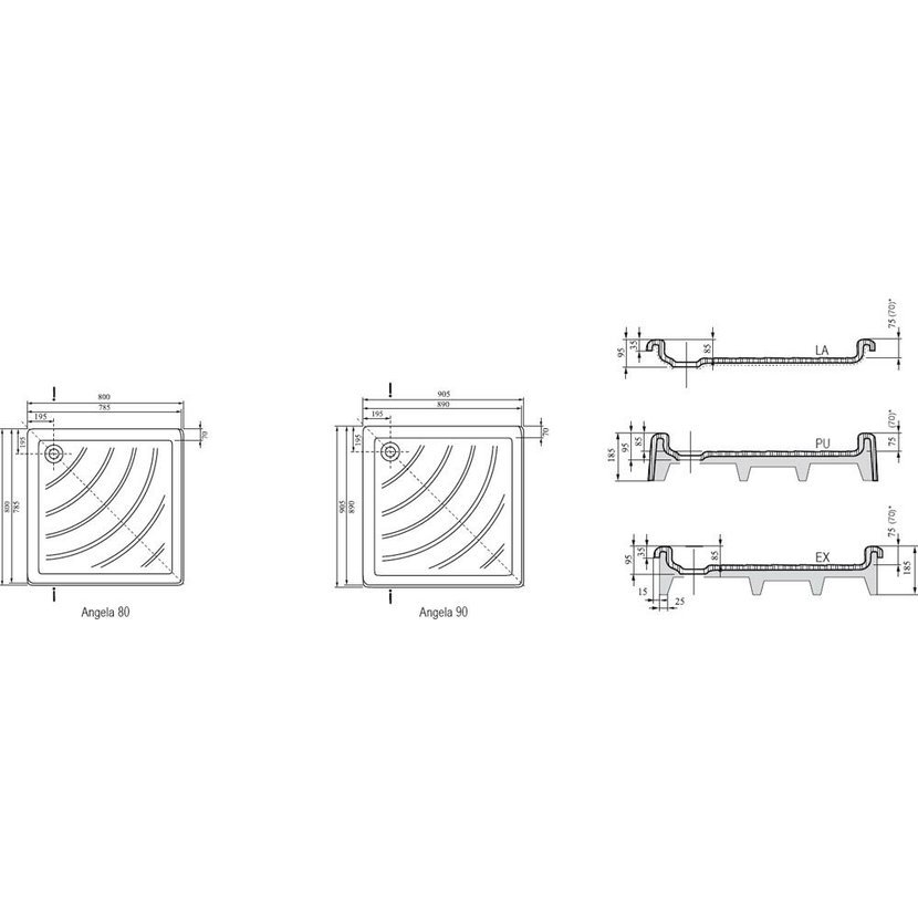 Čtvercová sprchová vanička Angela LA je určená k instalaci na nožičky nebo k zapuštění. Vyrobena z akrylátu v bílé barvě a s ochrannou vrstvou AntiBac®.