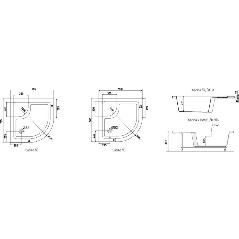 Nožičky i panel se objednávají zvlášť. Vanička Sabina je vhodná pro sprchové kouty s nižšími nástavbami SKCP4 Sabina nebo BLCP4 Sabina. Doporučujeme použít sifon RAVAK Sabina. Při instalaci vaničky doporučujeme použít univerzální montážní sadu.