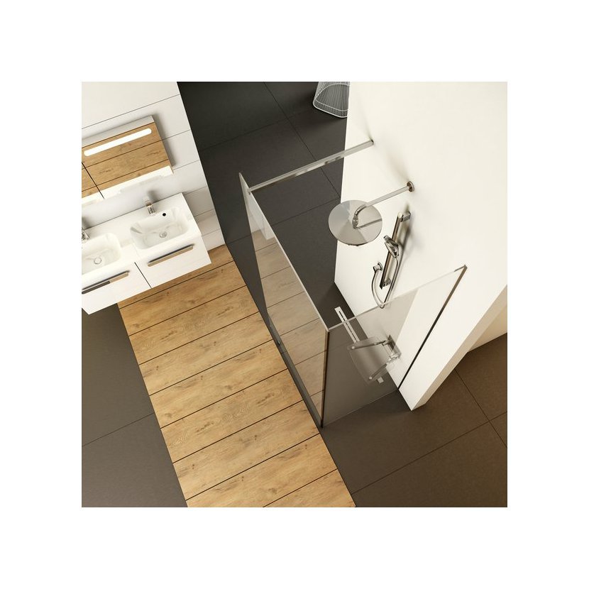 Sprchový kout Walk-In Corner tvoří dvě tvrzená bezpečnostní skla o tloušťce 8 mm, která se spojují rohovým spojovacím profilem. Stabilitu výrobku zajišťuje kovová vzpěra, která spolu s bočním sklem určuje šířku otevřeného vstupu.