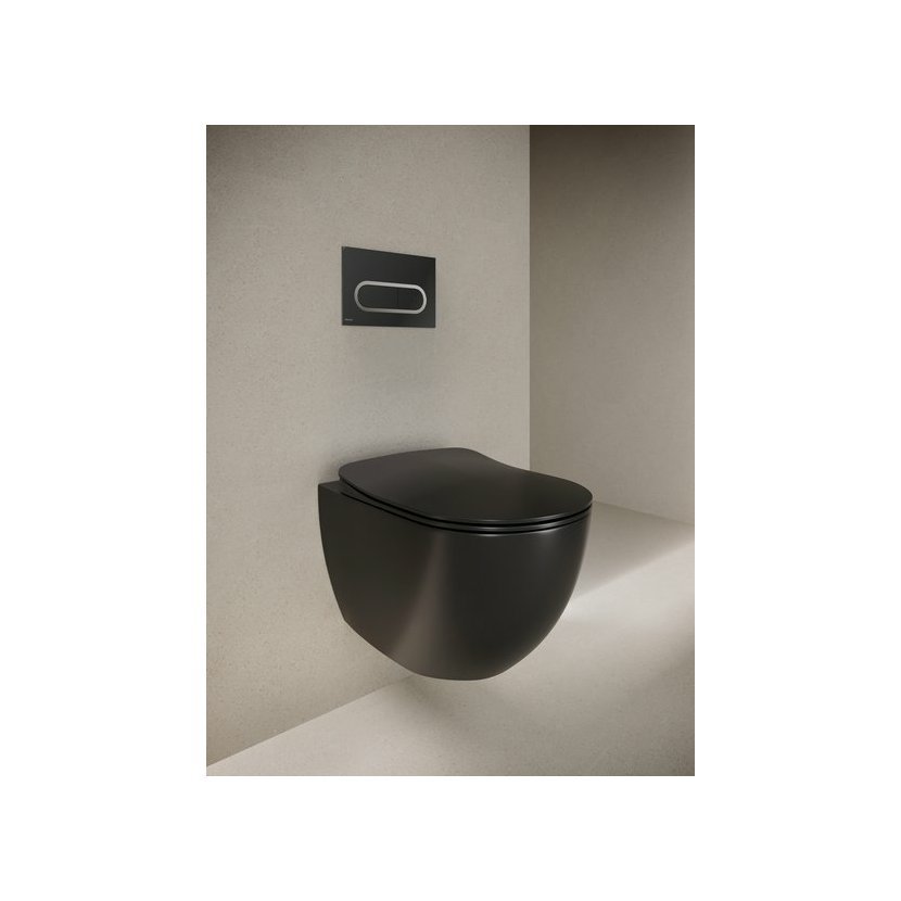 Kvalitní černý matný keramický materiál ve svěžím a domyšleném designu pro každý den. Konstrukce toalety bez oplachového lemu umožňuje spláchnutí celé plochy. WC je určeno k zavěšení na zeď. K WC doporučujeme dokoupit instalační splachovací modul, černé ovládací tlačítko Chrome a černé sedátko vybavené zpomalovacím systémem SoftClose - černé WC sedátko Uni Chrome Flat. WC Uni Chrome RimOff černé disponuje systémem Click, který umožňuje jednoduše sejmout sedátko jedním pohybem a dokonale vyčistit prostor pod ním. Pro ucelené řešení toaletní místnosti či koupelny je možné dokoupit další výrobky konceptu Chrome (bidety, umyvadla, nábytek atd.).