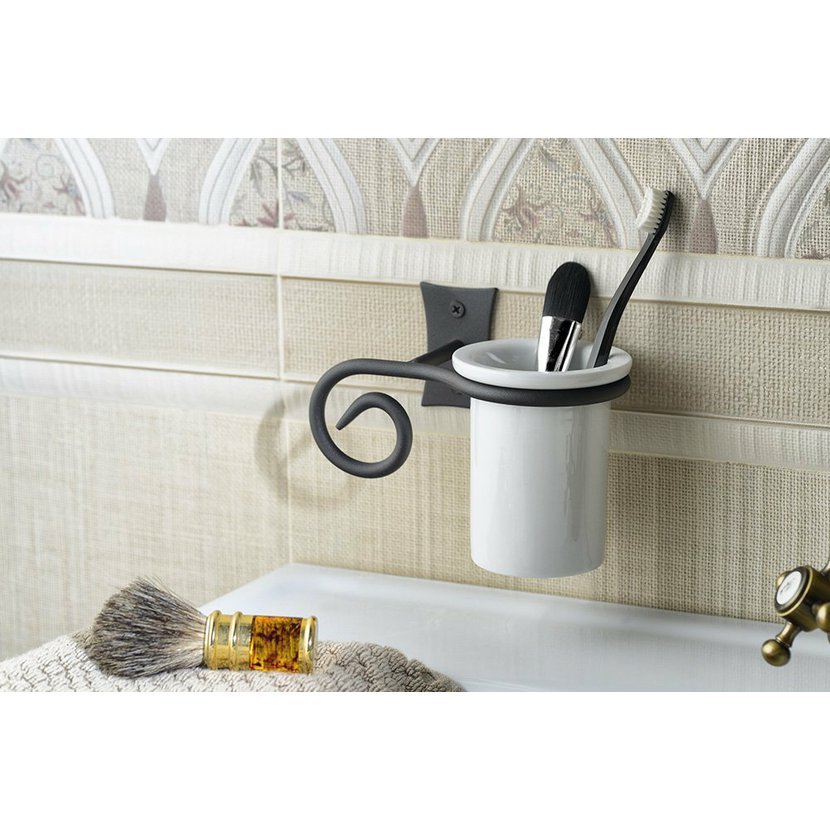 Koupelnové doplňky REBECCA evokují krásu uměleckého kovářství. Kované úchyty vkusně doplňují nádobky z bílé keramiky. Nechte se unést surovou krásou zručně zpracovaného kovu série REBECCA.