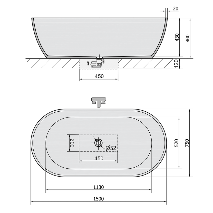 Parametry produktu  REDUTA volně stojící vana litý mramor 150x75x46cm, bílá