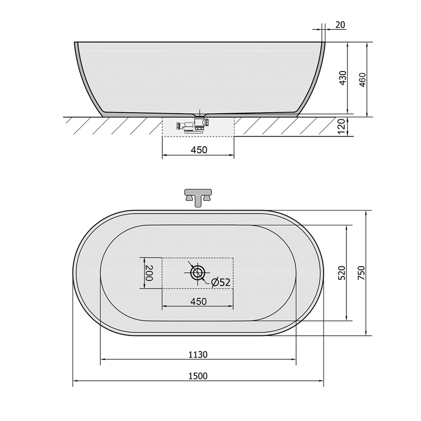 Parametry produktu  REDUTA volně stojící vana litý mramor 150x75x46cm, černá/bílá
