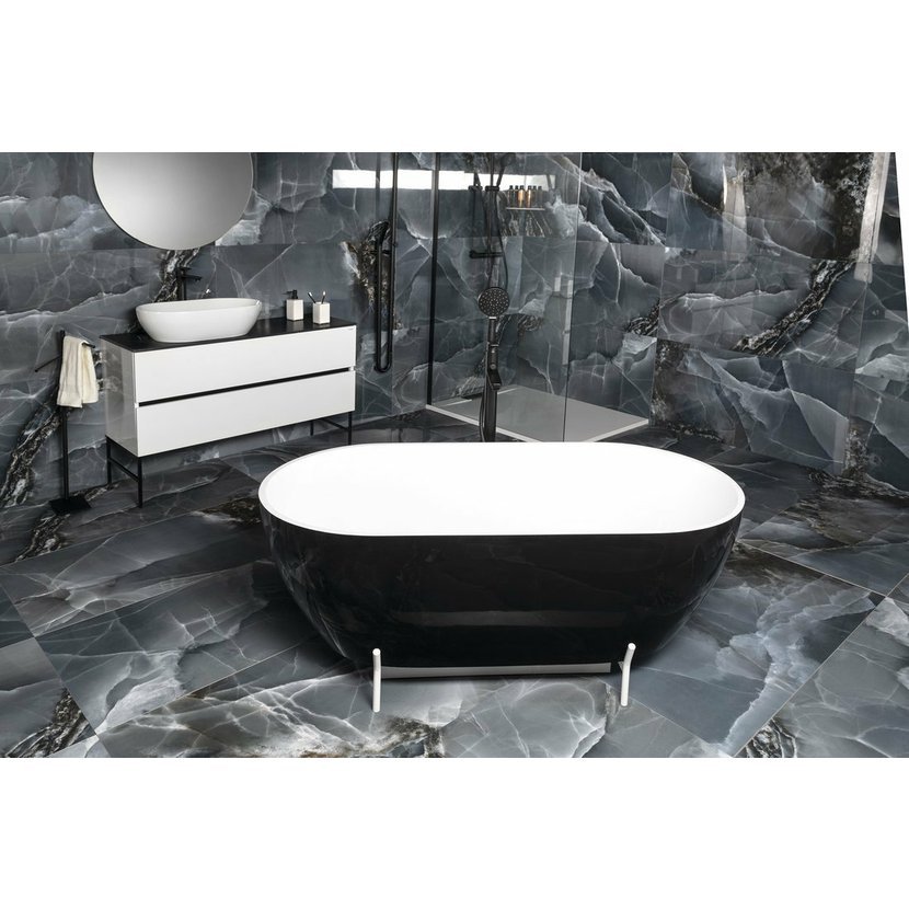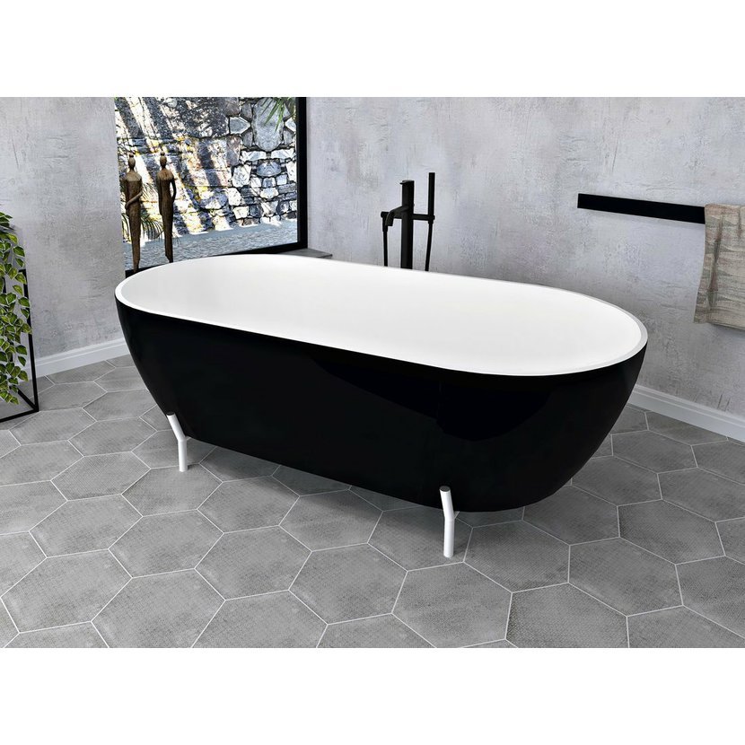 REDUTA volně stojící vana litý mramor 150x75x46cm, černá/bílá