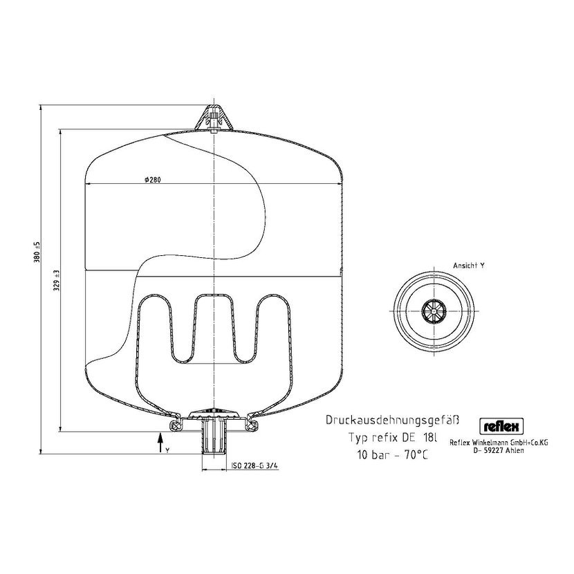 Provedení: Max.provozní tlak: 10 barů Objem: 18 l Průměr: 280 mm Výška: 380 mm