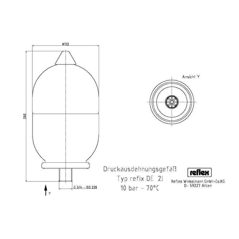 Provedení: Max.provozní tlak: 10 barů Objem: 2 l Průměr: 132 mm Výška: 260 mm